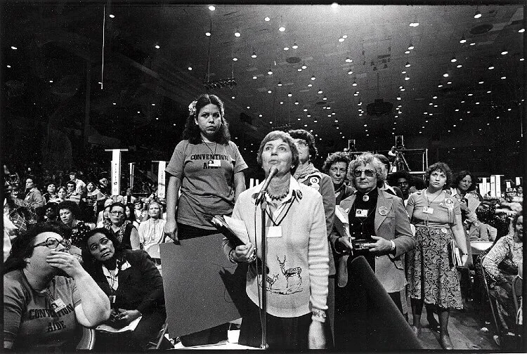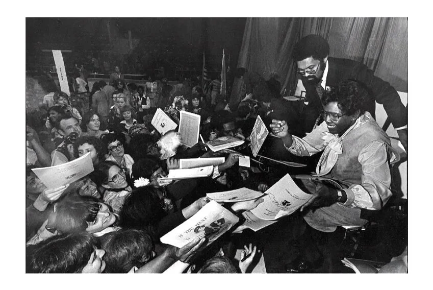 Coretta Scott King applauding Barbara Jordan’s keynote address