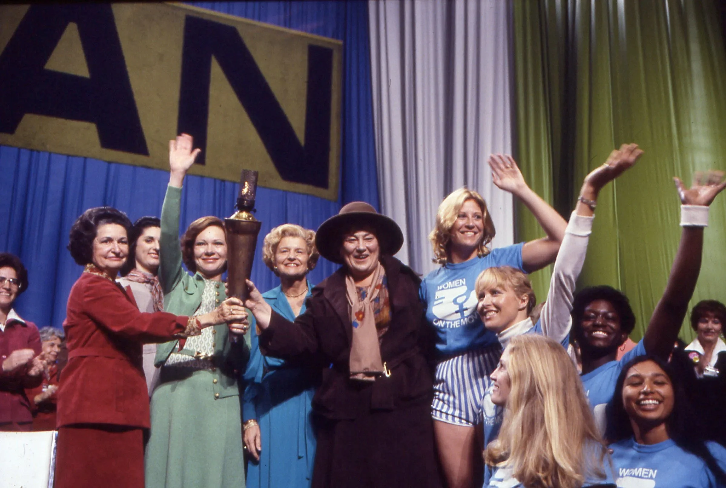 Grand opening with Three First Ladies, Bella Abzug, and athletes Donna De Varona, Peggy Kokernot, Michelle Cearcy and Sylvia Ortiz