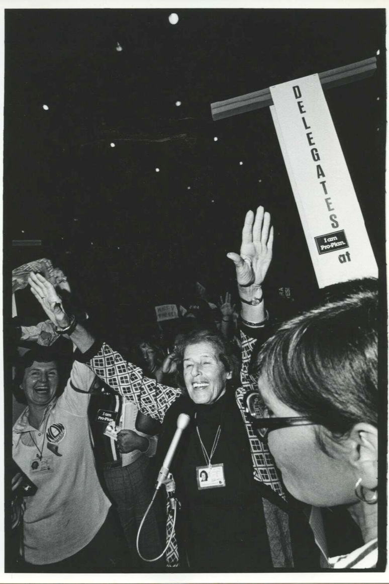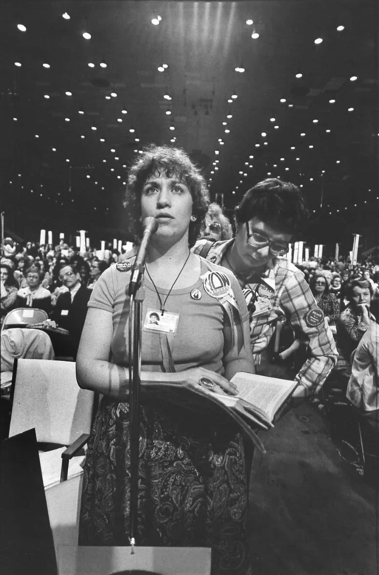 First Lady Betty Ford applauding Barbara Jordan’s keynote address.